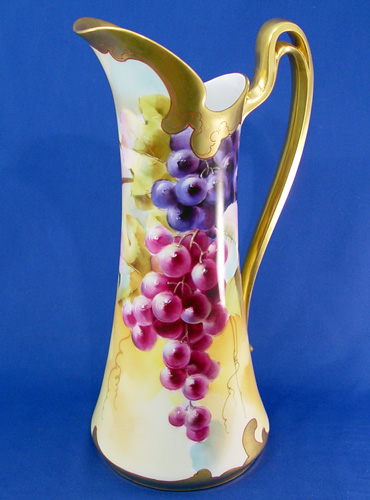 HAND PAINTED PICKARD CHINA EWER IN A GRAPE MOTIF: Artist signed A Coufell. 14''h.