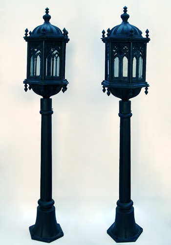 PAIR OF DECORATIVE CAST IRON STREET LAMPS: Ready for your wiring and socket choice, approx. 72''h.
