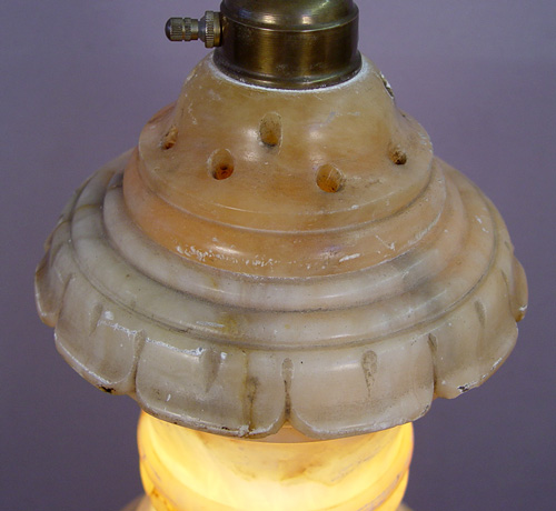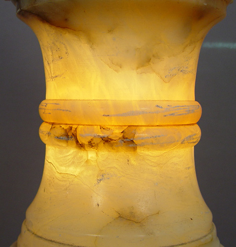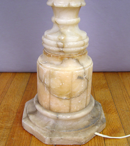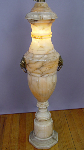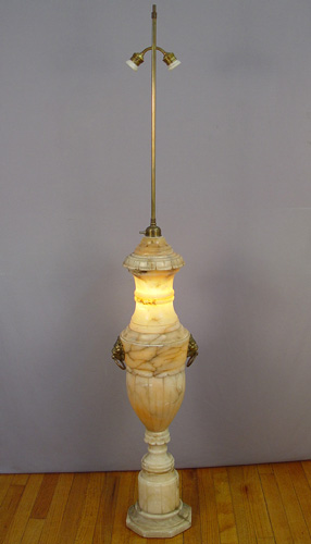 CARVED ALABASTER FLOOR LAMP: Internal light to base, double light sockets, 38'' base and 64'' overall. Est. $800/1000**