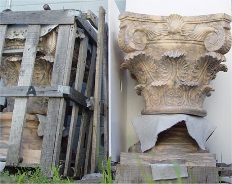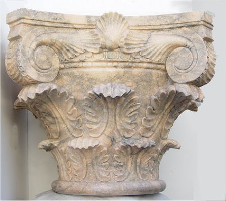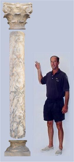 PAIR OF MAGNIFICENT 10' CARVED MARBLE PILLARS: With Roman Corinthian capitals and floral carved columns. These are the real things! Sold as a pair.