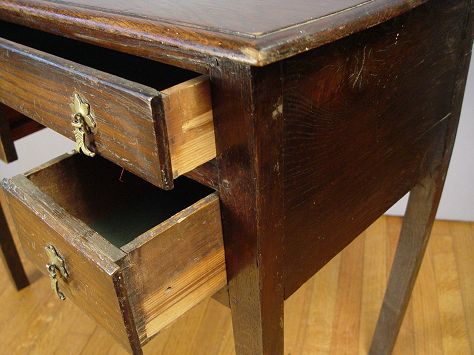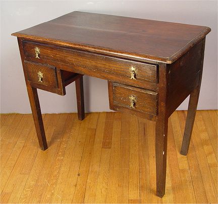 ENGLISH OAK WRITING TABLE: 3 drawers, straight legs, drop pulls. 30''h x 35 1/2''w x 20''d Est. $400/700**
