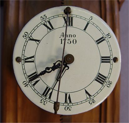 ANNO WALL CLOCK: Anno 1750 to dial, 27 1/2''. All clocks and watches are sold as not working, due to their delicate nature, even though they may be just fine.
