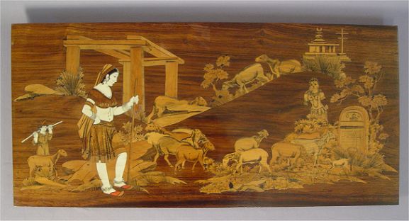 INLAID ITALIAN PANEL: Ca 1880. Ivory and mixed wood inlays. 32 1/2''h x 15 1/2''w Est. $200/300**