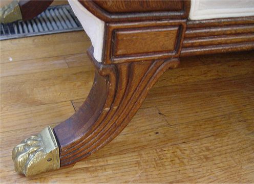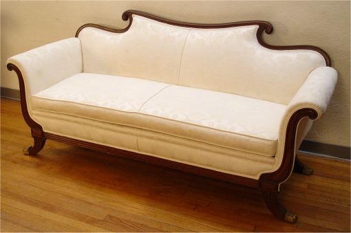 DUNCAN PHYFE STYLE MAHOGANY SOFA: Splay legs ending in brass caps, single full length cushion, 34 1/2''h. x 76'' long x 30'' deep.