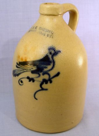NORTON COBALT BIRD DECORATED STONEWARE JUG: J & E Norton, Bennington Vermont, Ca. 1850-59. 11 1/2''h.