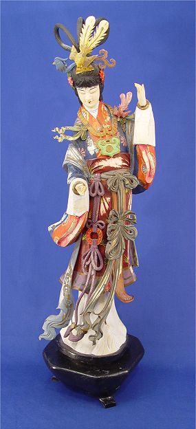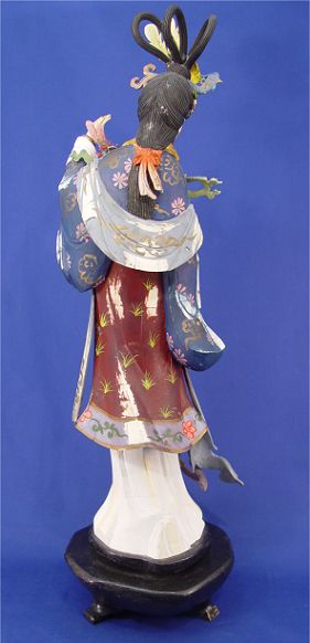 POLYCHROME JAPANESE GEISHA CARVING: Exquisite detail, bone and wood. 24''h