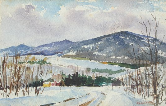 GERVASI, Frank, (American, 1895-1986): Northeastern Winter Landscape (Tree Study Verso), W/C, 6'' x 9 1/2'', signed, worn period frame, 12'' x 15''.