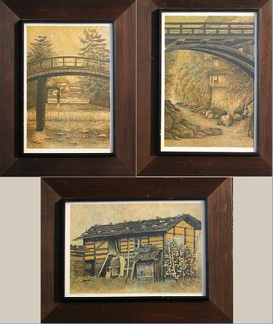 KATSUDA, Yukio, (Japanese, 1941-): 3 Piece Art Lot; Landscape number 97, Lithograph, sight size 10 1/4'' x 15'', pencil signed, dated '76, numbered 4/100, Kanda frame, 15'' x 21'',Landscape number 95, Lithograph, sight size 15'' x 10 1/4'', signed, dated '76, and numbered 19/100, Kanda frame, 21'' x 16'', Landscape number 96, Lithograph, sight size 15'' 10 1/4'', signed, dated '76, and numbered 25/100, original Kanda frame, 21'' x 16''. Est. $200/400**