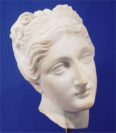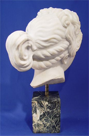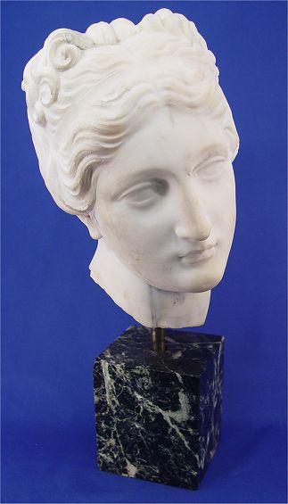 CARVED ALABASTER HEAD: Mounted on marble stand. 18''h overall
