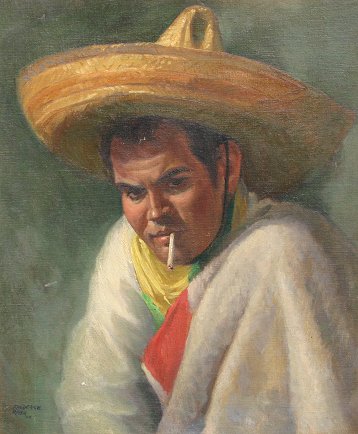 RASH, Frederick, (American, 20th C.): ''Juan the Mexican'', O/CB, 24'' x 20, signed and dated '44, titled verso, carved frame, 28'' x 24''. Several flecks, needs cleaning.