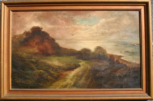 19th C. COASTAL O/C: 22'' x 36'', Signed Le Mon?, original frame, 28'' x 42''. Repair to tear, needs cleaning, several pin holes, patches visible verso. Est. $400/600**