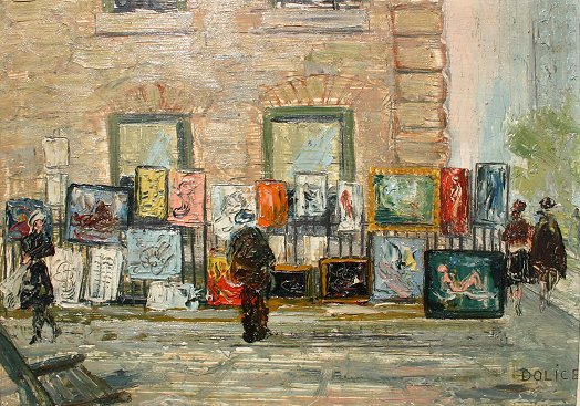 DOLICE, Leon, (American, 1892-1960): New York City Street Scene, Art Show, O/B, 10'' x 14'', signed, unframed.