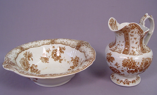 ROYAL STAFFORDSHIRE FASHODA PITCHER/BOWL: Brown and white, 17 1/2'', 11''h.