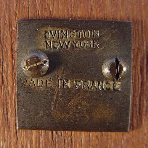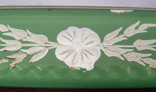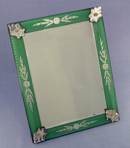 FRENCH DECO EASEL BACK MIRROR: Etched glass, 14 1/2'' x 11''. Stamped ''Ovington New York Made in France''.