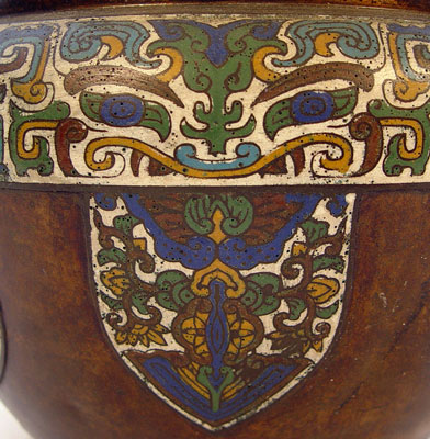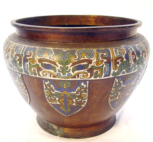 LARGE CHINESE CHAMPLEVE' JARDINIERE: 11''h. x 12 1/2'' dia.