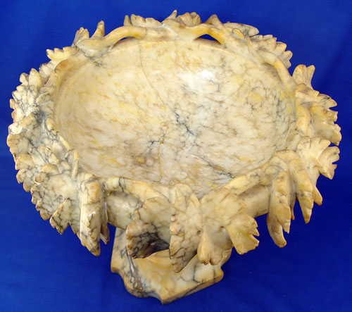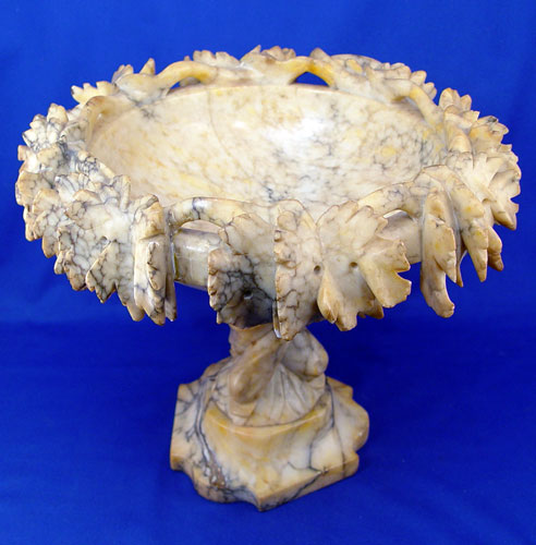 ITALIAN ALABASTER CENTER BOWL: Pedestal bowl carved with a grape design border. 13 1/2'' dia. x 11 1/2''.
