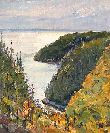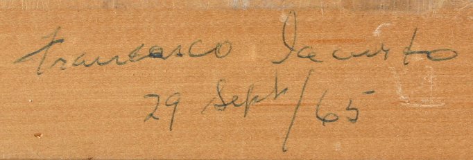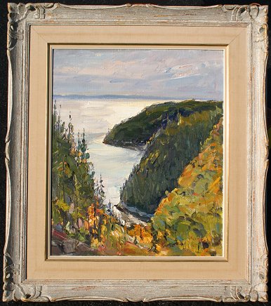 IACURTO, Francesco, A.R.C.A.(Canadian, 1908-): Canadian Lakeside Landscape, O/C, 24'' x 20 1/4'', signed, dated 1965, gesso frame with wear, 34'' x 30''. Est. $2000/4000**