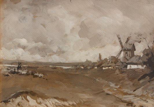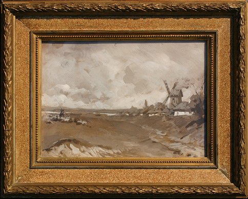 BONGART, Sergei, (Russian/American, 1915-1985): Windmill Landscape, Gouache, 8'' x 11 1/4'', no visible signature, gilded gesso frame with wear, 13'' x 16''. Est. $600/900**