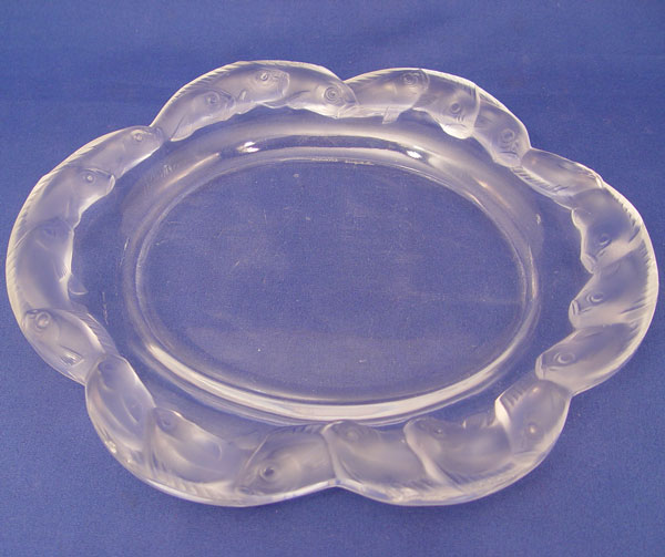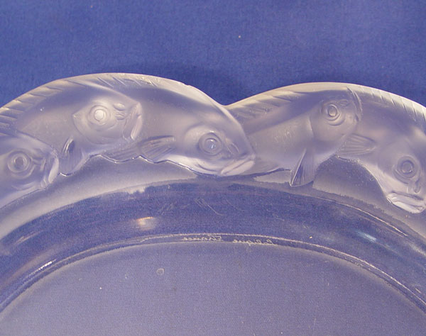 LALIQUE FRENCH CRYSTAL TRAY WITH FISH MOTIF: Signed in script ''Lalique France'', 10 3/4'' dia. 1''h. Several very minor dings on the rim.