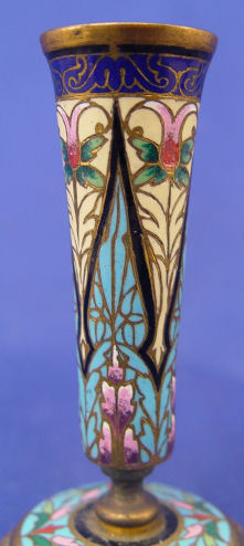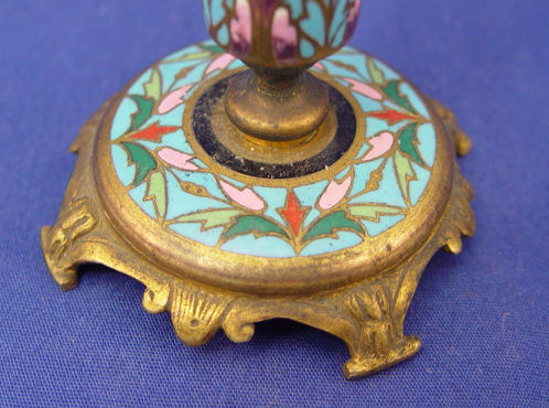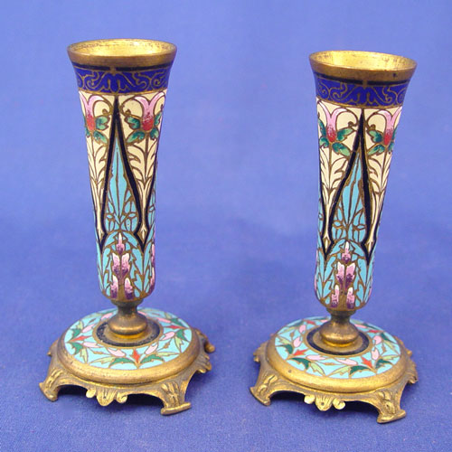 PAIR MINIATURE FRENCH ENAMEL BRONZE: Flared vase on footed pedestal base, 4 1/2''h., unsigned.
