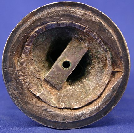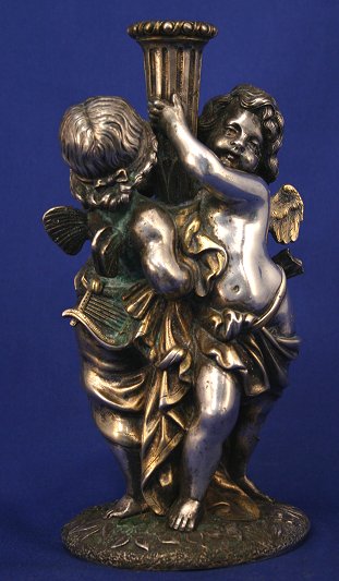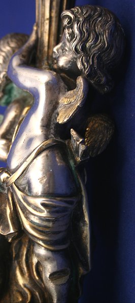 FIGURAL SILVERED BRONZE CHERUB COMPOTE BASE: Circa 1900 or earlier, 7 1/2'' h., no visible signature. Several dents.