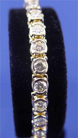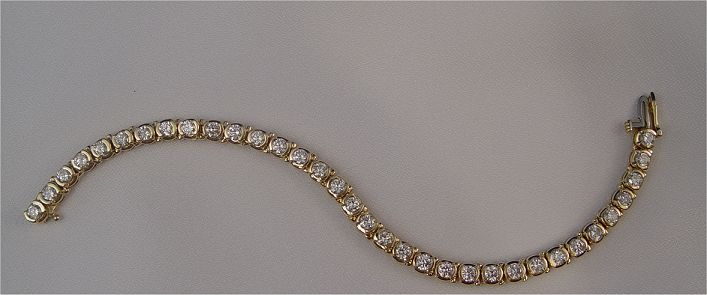 6CTW DIAMOND TENNIS BRACELET: 14k yellow gold tennis bracelet set with 34 round brilliant cut diamonds, approx. 3.5 to 3.6 mm, VS clarity and IJK color, 7''l., hidden box clasp with safety latch, 20.8 grams. 1993 appraisal by a graduate gemologist in Overland Park Kansas, $8550 estimated retail replacement value. Est. $4000/5500**