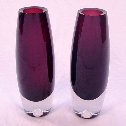 PAIR ERIKKI VERSANZA ART GLASS VASES: Amethyst color, signed, 12''h.