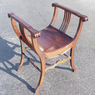 MAHOGANY SAVONAROLA BENCH SEAT: Central Chair Co. of Indiana. Excellent condition, 28 3/4'' x 23'' x 17 1/4''.