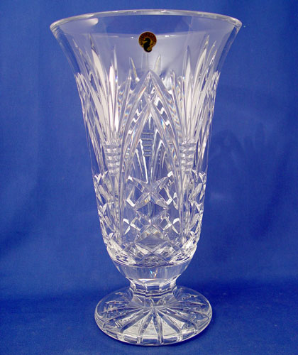 TALL WATERFORD CRYSTAL VASE: 13 3/4''h., 8 1/4'' dia. at the rim. Bears the Waterford foil label and it is etched Waterford.