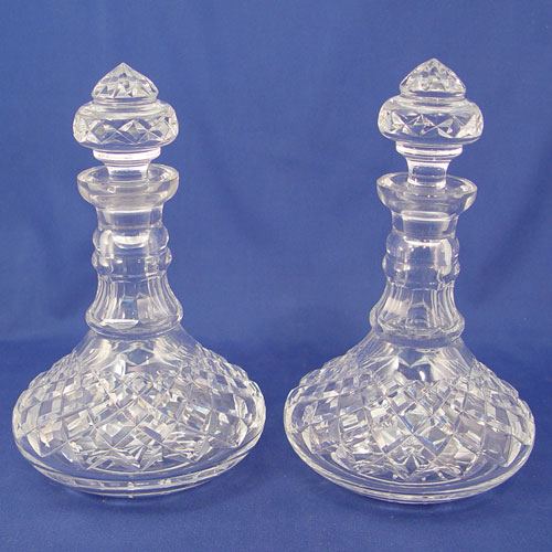 PAIR OF WATERFORD CRYSTAL DECANTERS: 10''h., cut in an open diamond pattern with faceted stopper.