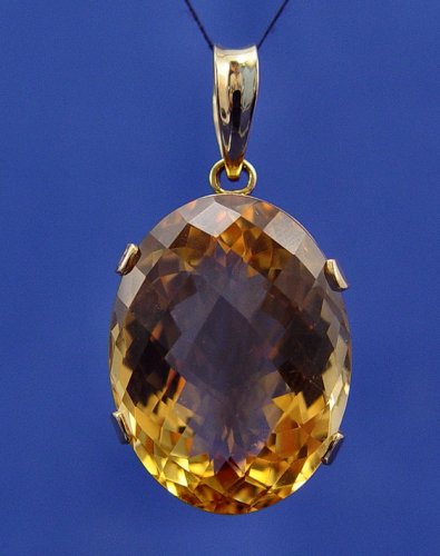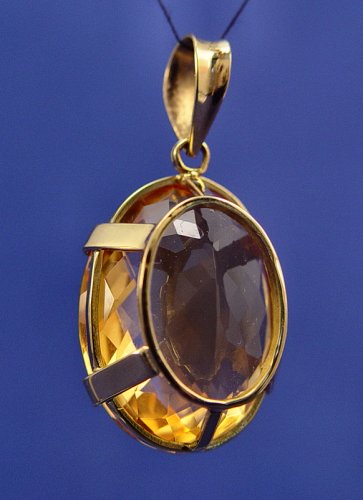 SPARKLING 48CT CITRINE PENDENT: Briolette cut stone set in 14k yellow gold pendent mounting, approx. 1 3/4''l., 13.1 grams.