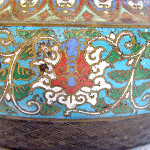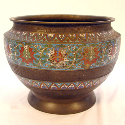 LARGE CHINESE CHAMPLAVE' JARDINIERE: 9 3/4''h. x 11 1/2'' dia.