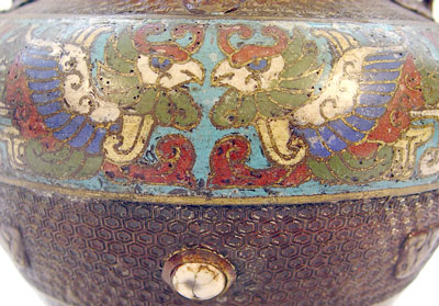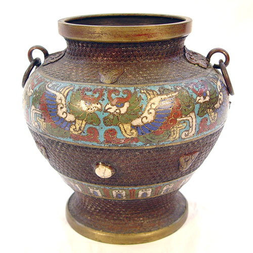 SIGNED CHAMPELVE VASE: Ring handles, signed on the underside. 8 1/2''h.