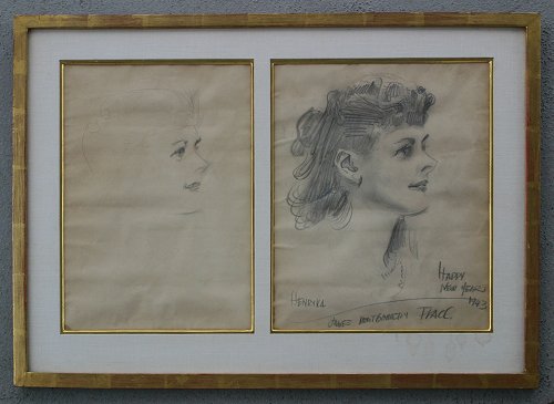 FLAGG, James Montgomery, (American, 1877-1960): 2 Pencil Drawings of Henryka, Study/Sketch and Completed Portrait, signed and dated 1943 with Happy New Year wishes, sight size 14 1/4'' x 11 1/2 '' each , fine gilded frame, 20'' x 29''.