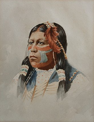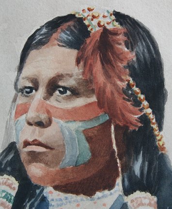 NATIVE AMERICAN INDIAN BRAVE PORTRAIT PAXSON?: W/C, 9'' x 7'', possible faint signature lower left, Circa 1st quarter 20th C.