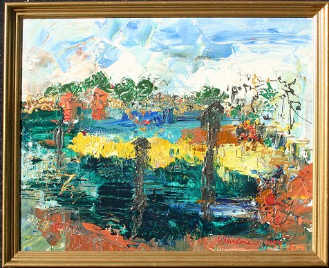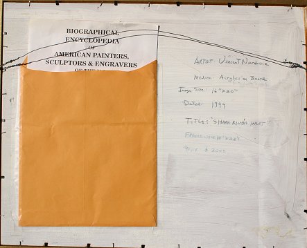 NARDONE, Vincent, (American, 1937-): ''Shark River'', Acrylic/Board, 10'' x 20'', signed & dated '99 Inlet, signed, titled & dated verso.