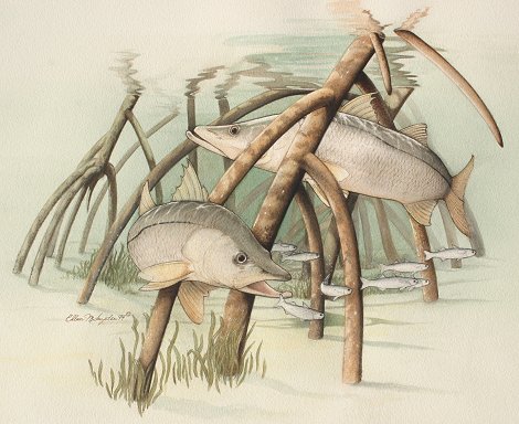 SNYDER, Ellen, (American, 20th C.): Snook, W/C, sight size 20 1/2'' x 24 1/2'', signed and dated '94, custom framing, 32 1/2'' x 36 1/2''.