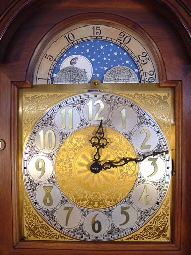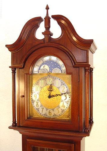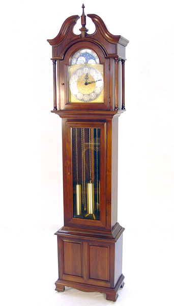 GERMAN MADE GRANDFATHERS CLOCK: Later 20th C moon phase dial, choice of three chimes or silent. 7' tall x 19'' x10 1/2''.
