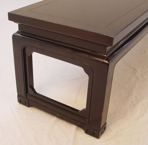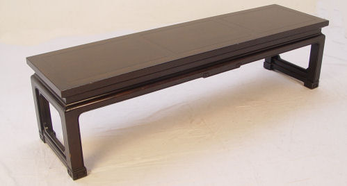 CHINESE STYLE LOW TABLE BY BAKER: Metal Baker label. Bench or table, 16''h. x 60'' x 16''.