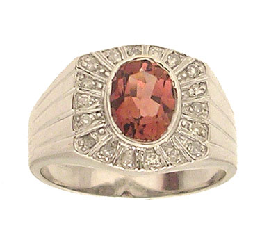 GENTLEMAN'S 2CT TOURMALINE RING: 14k white gold mounting bezel set with an oval pink tourmaline and approx. .20ctw of pave set diamonds, size 10, 7.3 grams. Est. $250/350**