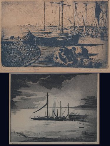 2 PC LOT ETCHINGS INCLUDE (1) NUYTTENS, Pierre, (American, 1885-1960)): ''Harbor Scene in Capri'', Etching, 7 1/2'' x 11 1/2'', pencil signed and titled, wooden frame with wear, 14'' x 19'', mild darkening of image; (2) BLAKEMAN, Thomas, (American, 1887-): Harbor Scene, Etching and Aquatint, 7 1/2'' x 9 1/2'', pencil signed and numbered edition of 50, wooden frame, 14 1/2'' x 16 1/2'', mild acid burn in margins.