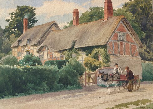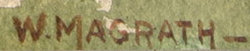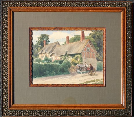 MAGRATH, William, (Irish, 1838-1918): Cottage Scene with Figures, W/C, sight size 11'' x 15'', signed, carved fruit motif frame, 21'' x 25''.