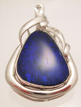 4.73CT OPAL DOUBLET ENHANCER PENDANT: 14k white gold pendant set with a deep blue opal doublet, accented by tiny diamonds, enhancer bail fits up to a 4mm chain, 1 3/8''l., 4.1 grams. Est. $150/200**