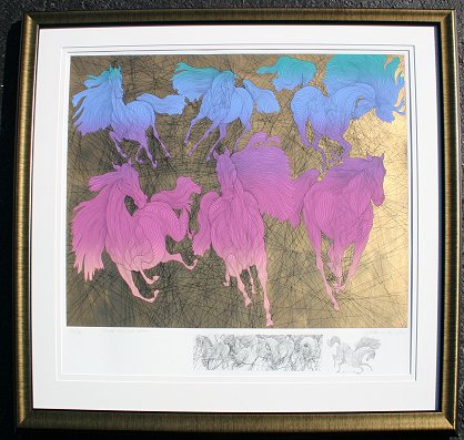 AZOULAY, Guillaume, (Morocco, 1949-): ''Spring Cavalcade'', 28 1/2'' x 32 1/2'' sight size, pencil signed, titled, dated 2003, and numbered 46/70, exceptional custom black frame, 34'' x 41''.