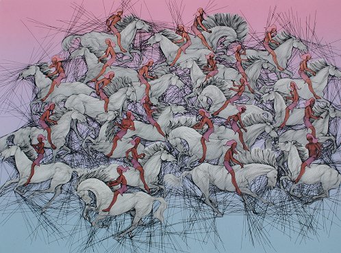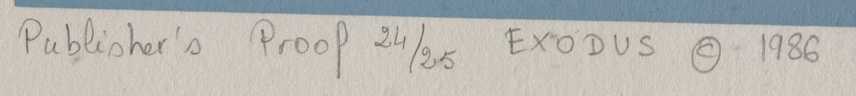 AZOULAY, Guillaume, (Morocco, 1949-): ''Exodus'', 23 1/2'' x 31 1/2'' sight size, pencil signed, titled, dated 1986, publishers proof number 24/25, exceptional custom black frame, 34'' x 41''.