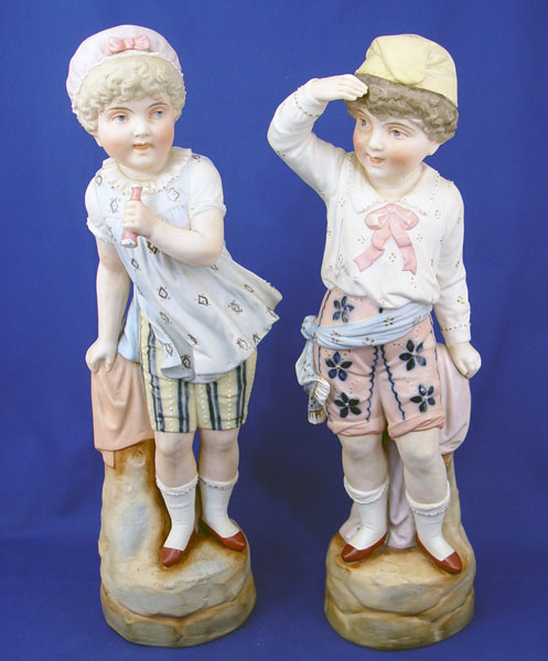 LARGE PAIR OF VICTORIAN BISQUE CHILDREN FIGURES: 18 1/4''H.