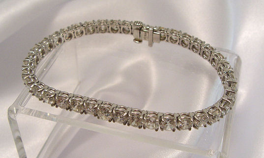 14CTW DIAMOND PLATINUM BRACELET: Wonderful sparkling platinum bauble prong set with 39 old Euro cut diamonds VS1 to SI2 clarity and E to M color. Locking closure with hidden hinged safety clasp, 7''l., 23.8 grams. Sold with current Florida Diamond Appraisers appraisal, retail replacement value $53,000.00. Est. $20000/30000**
