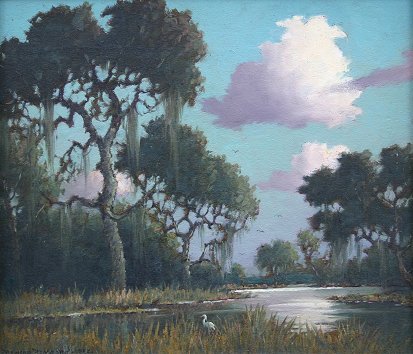MOORE, Benson Bond, (American, 1882-1974): ''Hillsborough River, Florida'', O/B, 14'' x 16'', signed LL and dated 1956, fine custom frame with wear, 16 1/2'' x 18 1/2'', titled verso, and numbered 531. Est. $1800/2500**