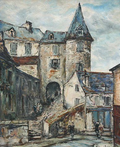 BESSE, Raymond, (European, 1899-1969): Chateroux Les Vieiles Prisons, O/C, signed LR, white carved frame, 27'' x 24'', signed and titled verso.
