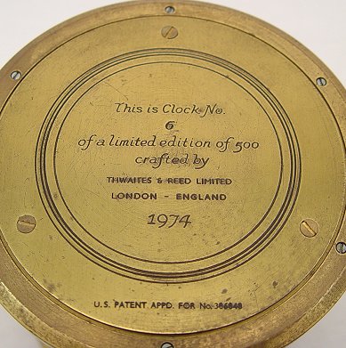 THWAITES & REED ROLLING CLOCK: Number 6 in a limited edition of 500. Crafted by Thwaites & Reed Ltd. London, England 1974. Over the course of a week the clock rolls downhill. 27''l. overall. The dial is approx. 4 1/2'' dia.